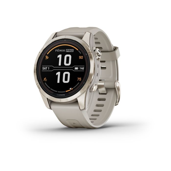 Fenix 7S Pro är den lilla storleken av Fenix 7 klockorna. Den mäter 42 mm i diameter.