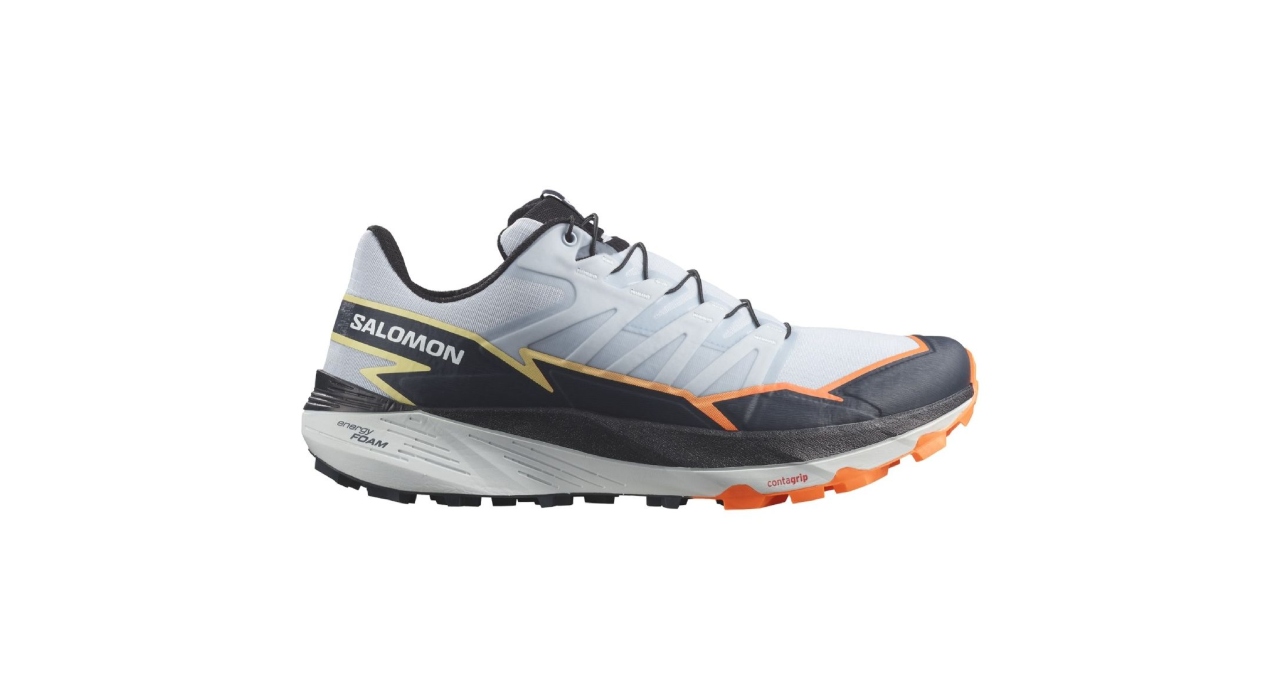 är en mångsidig traillöparsko skapad för att bemästra alla terränger, oavsett hur svåra eller tekniska de är. Skon kommer med ett 5mm sula mönster som ger ett exceptionellt bra grepp i allt från teknisk terräng, leriga stigar och klippiga sluttningar. Yttersulan är tillverkad av Contagrip® med dubbar i båda riktningarna för att skapa bra grepp i underlaget oavsett om det går upp eller ner. Mellansulan är gjord av Salomons Energy Foam™, som ger en bekväm och bra stötdämpning, vilket också gör Thundercross idealisk för längre distanser. Med Thundercross får du därmed en pålitlig trail löparsko som är bekväm och användbar på olika distanser och underlag.