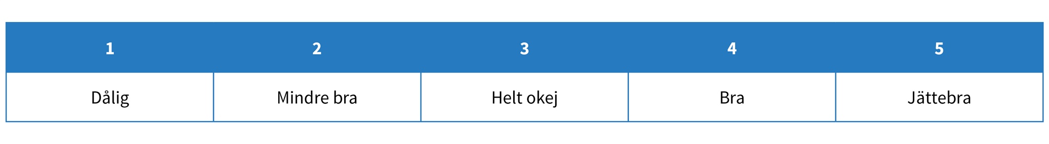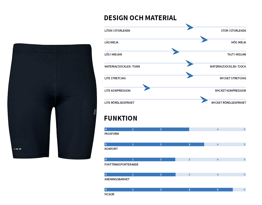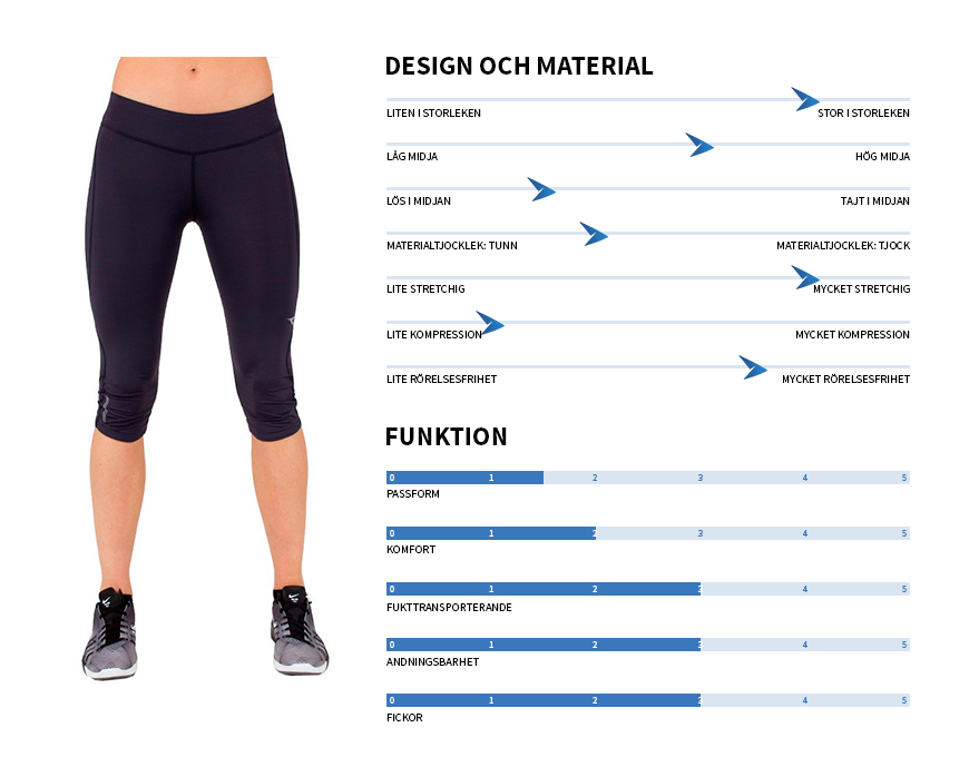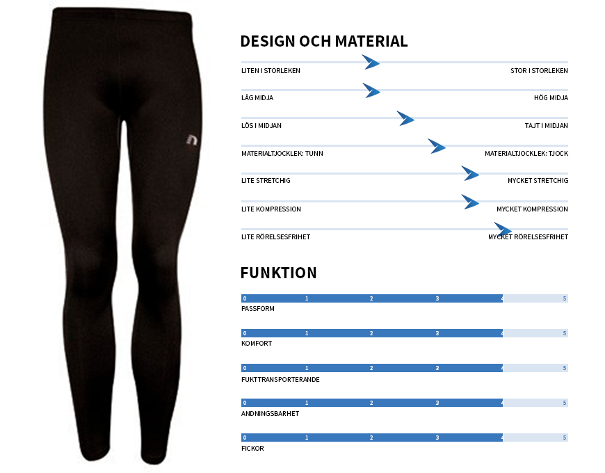 Testpanelen ombads att bedöma de olika tightsen på ett antal olika parametrar så som storlek, kompression och passform. För att utvärdera egenskaperna under parametern ”funktion”, använde panelen följande betygsskala som vägledning: