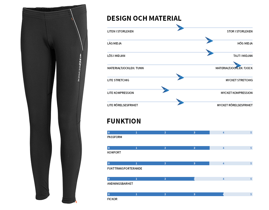 - Mina personliga favoriter! Läcker design och sitter överlag bra, det är bra kompression och man har känslan av att dem sitter där dem ska. Bra detalj med stor reflex-logga framtill. Andas bra. Har en bra, rymlig och stor ficka baktill. Det kommer helt säkert att bli många löpturer i dessa tights, trots att små förbättringar kan göras.