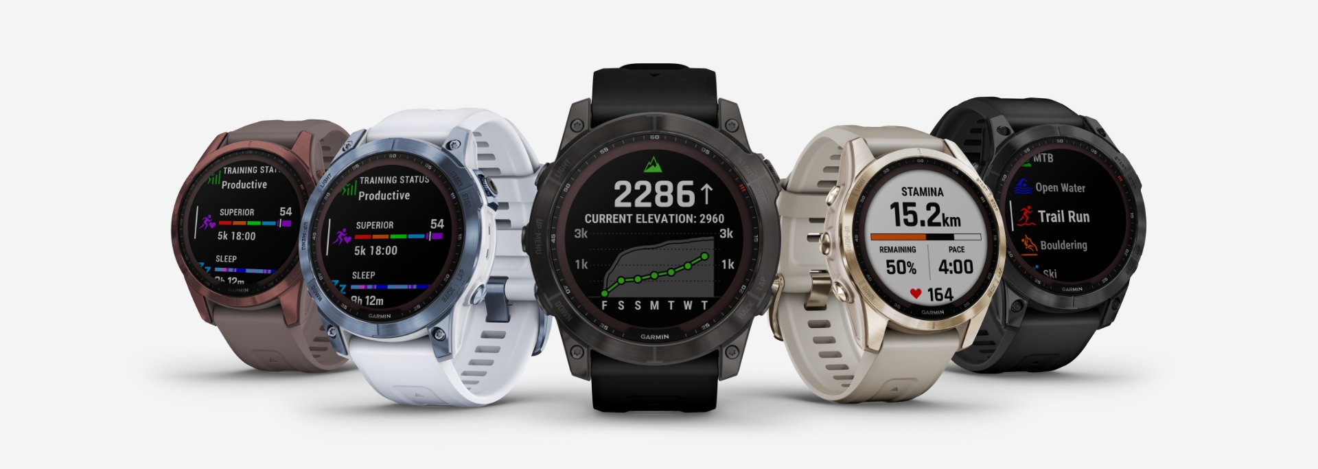 har länge varit kända för att vara de bästa multisport- och outdoor-klockorna, och det är inget undantag med 7-klockorna. Du får marknadens bästa kvalitet på material och massor av de mest avancerade funktionerna du kan ha i en klocka. Bland annat förstklassiga topografiska kartor, en ny uthållighetsberäkning - så du kan räkna ut hur mycket du har kvar i tanken -, förbättrad GPS och mycket mer. Du får naturligtvis även de vanliga träningsfunktionerna plus Garmin Pay och Garmin Music.