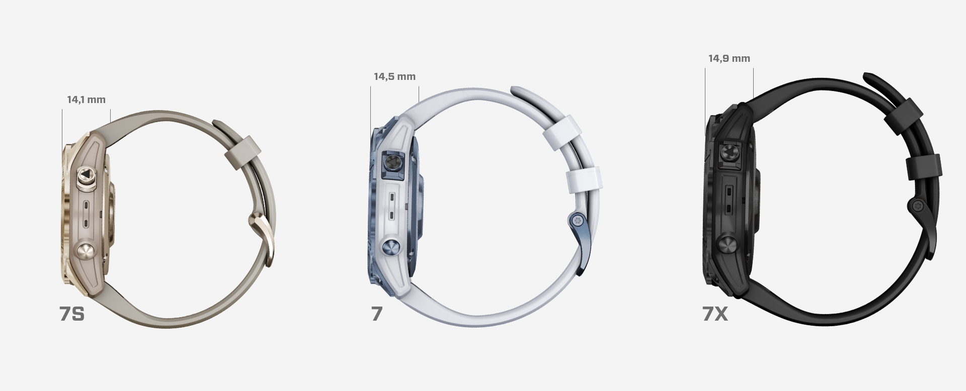 Fenix 7 och Fenix 7X har dessutom blivit tunnare än de tidigare utgåvorna. 7:an är 0.5 mm tunnare och 7X är 2,1 mm tunnare.