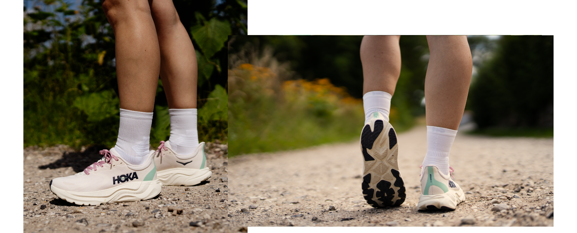 Det första jag märkte när jag satte på Arahi 8, var komforten. Överdelens mjuka meshmaterial, den voluminösa plösen, de elastiska snörena och den bekväma hälkappan. Även passformen utmärkte sig. Jämfört med Clifton 10 upplever jag Arahi 8 som mer rymlig - särskilt runt framfoten. HOKA rekommenderar att kvinnor går en halv storlek ned i Arahi 8 jämfört med deras övriga HOKA-skor. För mig fungerade min vanliga storlek bra.