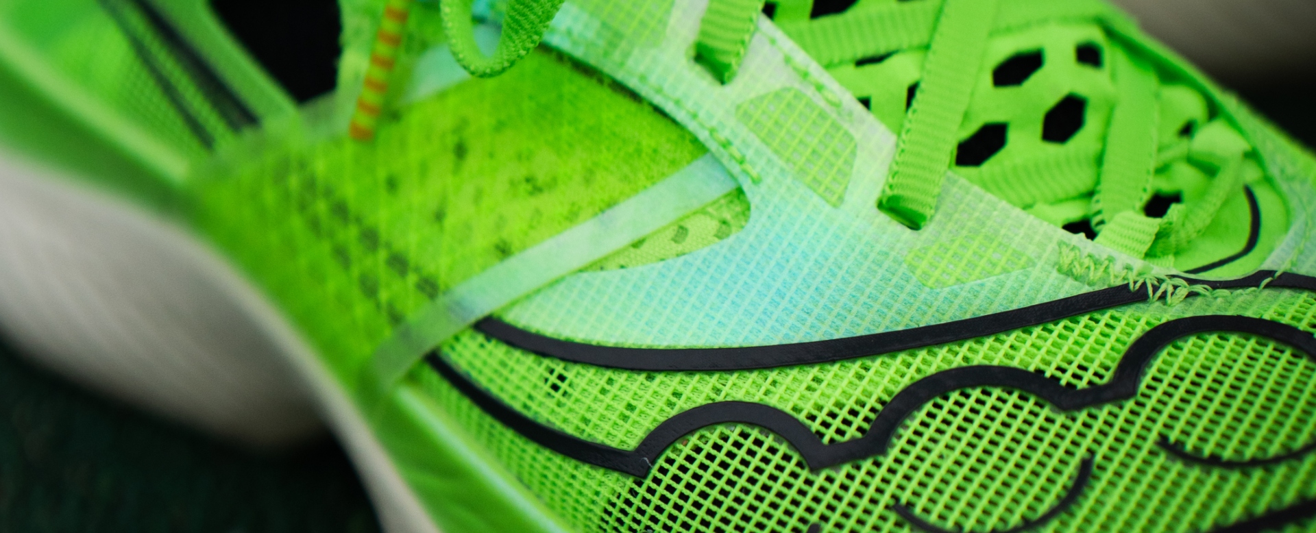 Det råder ingen tvekan om att skon är en renodlad , när man ser ovansidan av Saucony Endorphin Elite – den är inte bara otroligt tunn och lätt, men också genomhålad! Det bidrar inte bara till låg vikt utan också mycket bra ventilation för fötterna.
